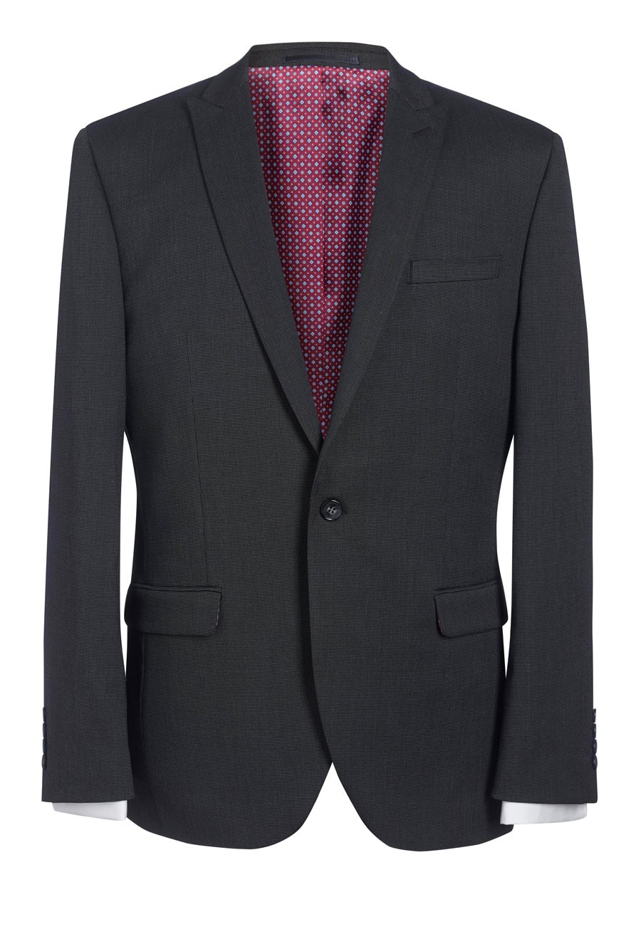 Slim fit, peaked lapel, 1 button, twin rear vents